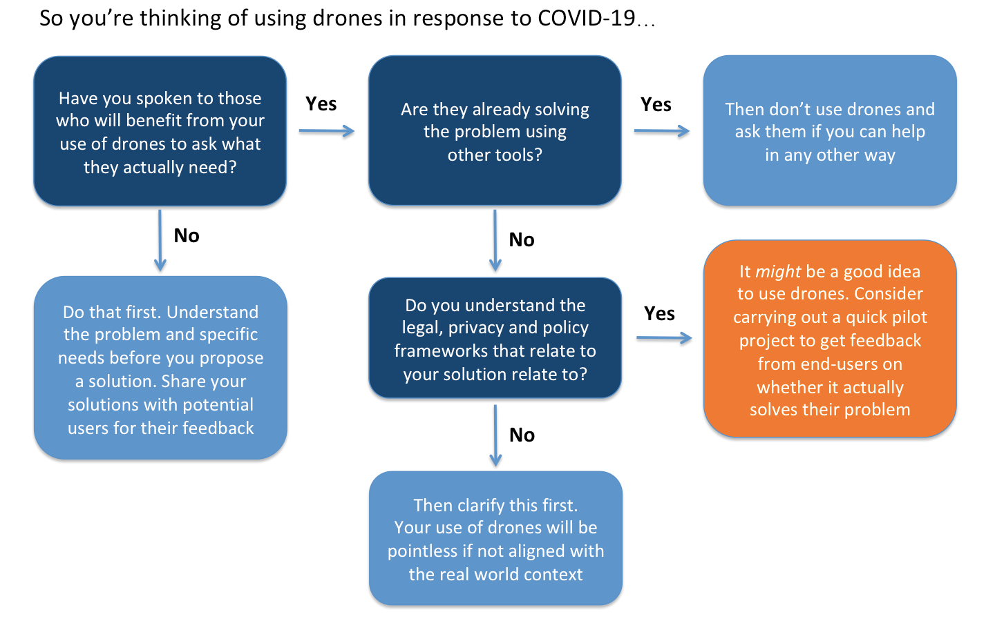 Drones are being used in all kinds of ways to tackle the coronavirus. Some of these applications are highly questionable. Others, such as the use of delivery drones, are more relevant. But the use of cargo drones in response to the pandemic also needs to be questioned. Being more relevant doesn't mean that all cargo drone projects are inherently impactful. This topic is of particular interest to WeRobotics and Flying Labs as we've been deploying cargo drones since 2016. Flying Labs are run entirely by local experts who tackle health, humanitarian, environmental and development problems by deploying robotics and AI in a responsible manner. Together with Flying Labs, we've: Delivered medicines and blood samples in the Amazon Rainforest with BD; Collected TB samples from remote clinics in Nepal with BNMT; Run cargo drone training and flights with the Center for Disease Control (CDC) in Papua New Guinea, and we'll be collecting patient samples for Polio testing in Cameroon with the CDC and World Health Organization (WHO). Also, we’ve worked on cargo drone projects with partners in Brazil to reduce Zika, in Fiji to reduce Dengue and in Tanzania to reduce Malaria. This extensive first-hand experience explains why we’re able to offer this cargo drone technology to Flying Labs and their partners. We also offer this peer reviewed professional online course on the use of cargo drones for medical delivery. Certificates of completion are signed by WeRobotics, MIT and UPenn. Last but not least, we are actively involved in developing ethical standards and codes of conduct, like this one on cargo drones.