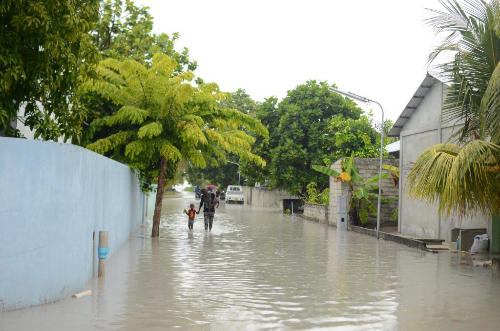 Disasters in Maldives are not usually of the massively destructive variety, with the key exception perhaps of the Indian Ocean tsunami. Nevertheless, they happen frequently and have regular disruptive effects on daily life for most people. As Ahmed was taking a group down to the coast for flight exercises, storm clouds rolled in and heavy rains poured for a little over an hour. What in most places would have been little more than a passing shower turned the streets of Nilandhoo into rivers.