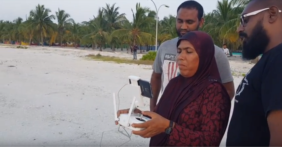 It’s a hot April morning on the island of Nilandhoo in Faafu Atoll and Ahmed Aslam, the Disaster Risk Reduction (DRR) manager for the Maldives National Disaster Management Center (NDMC) is leading a training in drone flight, aerial photography and mapping for 25 people. “The community is very enthusiastic,” he says. “They’re just excited to see how they can use drones themselves to respond quickly to emergencies where they live.”