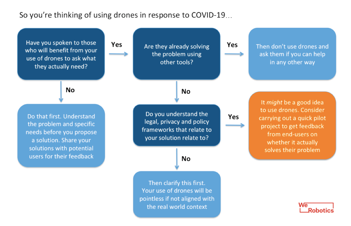 We should also note that when some governments and local authorities instruct local drone experts to spray disinfectants to contain COVID-19, for example, these local experts may have no choice. This may also be true for some of the other applications listed above. That being said, at the very least, it is our collective responsibility to inform these authorities about the expected added value of these applications based on the existing science and evidence. Naturally, all this needs to be deeply rooted within local context, politics and culture.