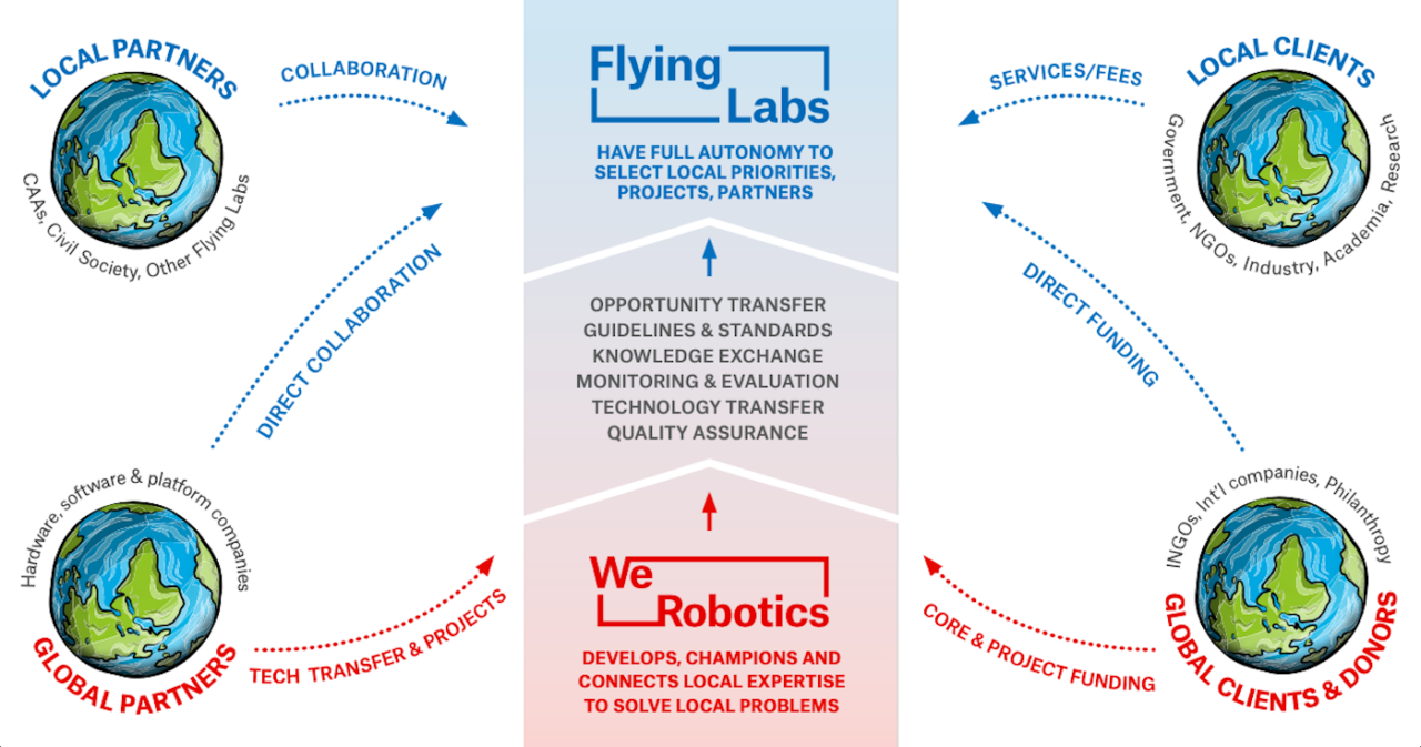 Flying Labs are independent, unique, and locally-led knowledge hubs. Connected across 30+ countries in Africa, Asia, Latin America, and beyond, these hubs form the Flying Labs network and use emerging technologies to drive positive social impact. WeRobotics serves as the primary enabler of the Flying Labs network and has done so for five years. We really treasure this role. At the same time, it's not about us. It's about the need for meaningful impact, social justice, and systems change in the social good sector. It's also about comparative advantage. We may not be the best qualified to enable the Flying Labs network five years from now. In fact, we're quite sure we won't be.