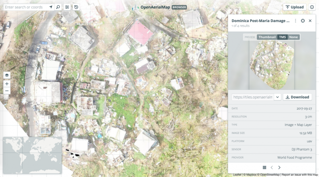 WeRobotics and WFP have been coordinating drone teams since September to map the Caribbean countries devastated by the recent hurricanes including Barbuda, Saint Martin, Dominica, and Puerto Rico among others. The resulting drone imagery, available on OpenAeriaMap, plays an invaluable role in supporting the recovery efforts across the region. As these efforts will continue for many more months, we welcome regular imagery updates from qualified drone pilots. Said pilots must follow the code of conduct for humanitarian drone missions in addition to aviation regulations in the Caribbean.