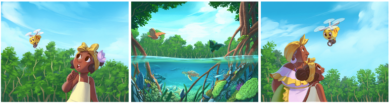 We began to co-create the strategy for the picture book series with several Flying Labs in early 2020. We then recruited local authors, editors, and illustrators in early 2021 to begin the co-creation process on the artistic side of the project. Naturally, Flying Labs actively participated in developing the storylines and characters since these storylines are based on their own real-world projects, and the characters are based on them and their local partners.